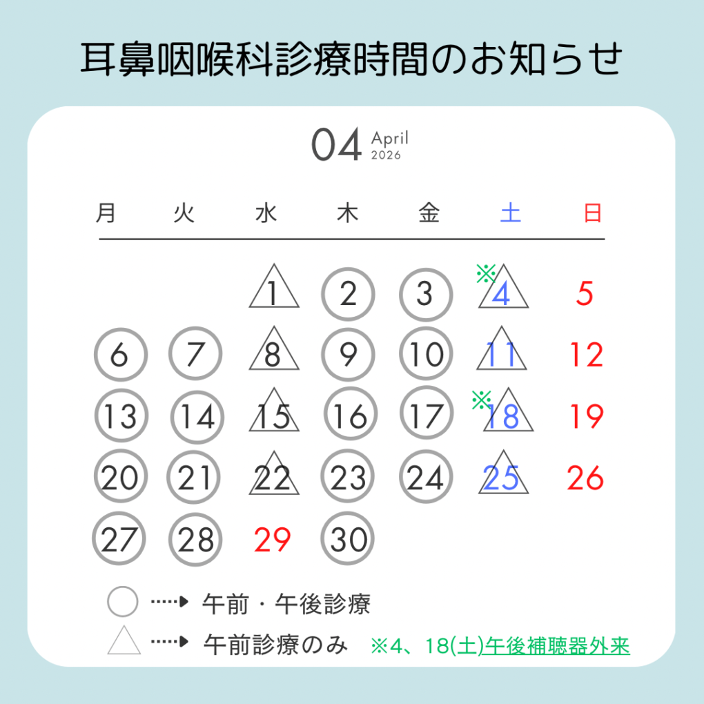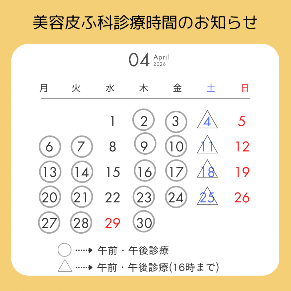 令和8年4月の診療予定日です。