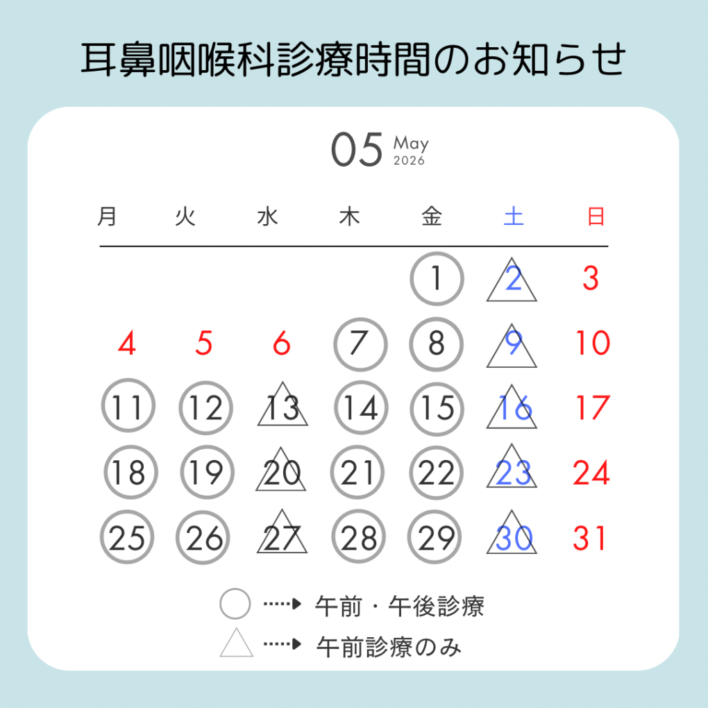 令和8年5月の診療予定日です。